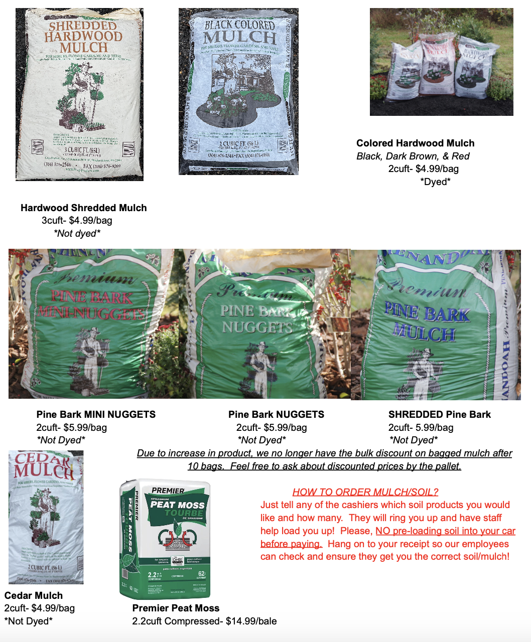 every week we get deliveries with tropicals, indoor plants, annuals, perrenials and much more. our products vary weekly and by the season.